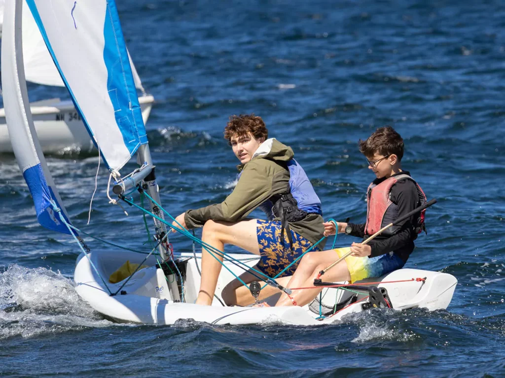 As breakfast and lunch wrap up in the dining hall, the bell rings and we review the activity choices they have for the upcoming two periods. Usually there are between 16 and 20 different offerings, ranging from the everyday favorites like sailing, tennis, pottery, archery, fishing, and waterskiing, to the more unusual and occasional – “canoe battle royale” and lumberjacking. Boys raise their hands for the activities that they are most interested in, and with help and guidance from counselors, set their course for the morning or afternoon ahead. There are no limits to which activities he can select – all boys, at all ages and all abilities, can choose from Kabeyun’s entire lineup of options.